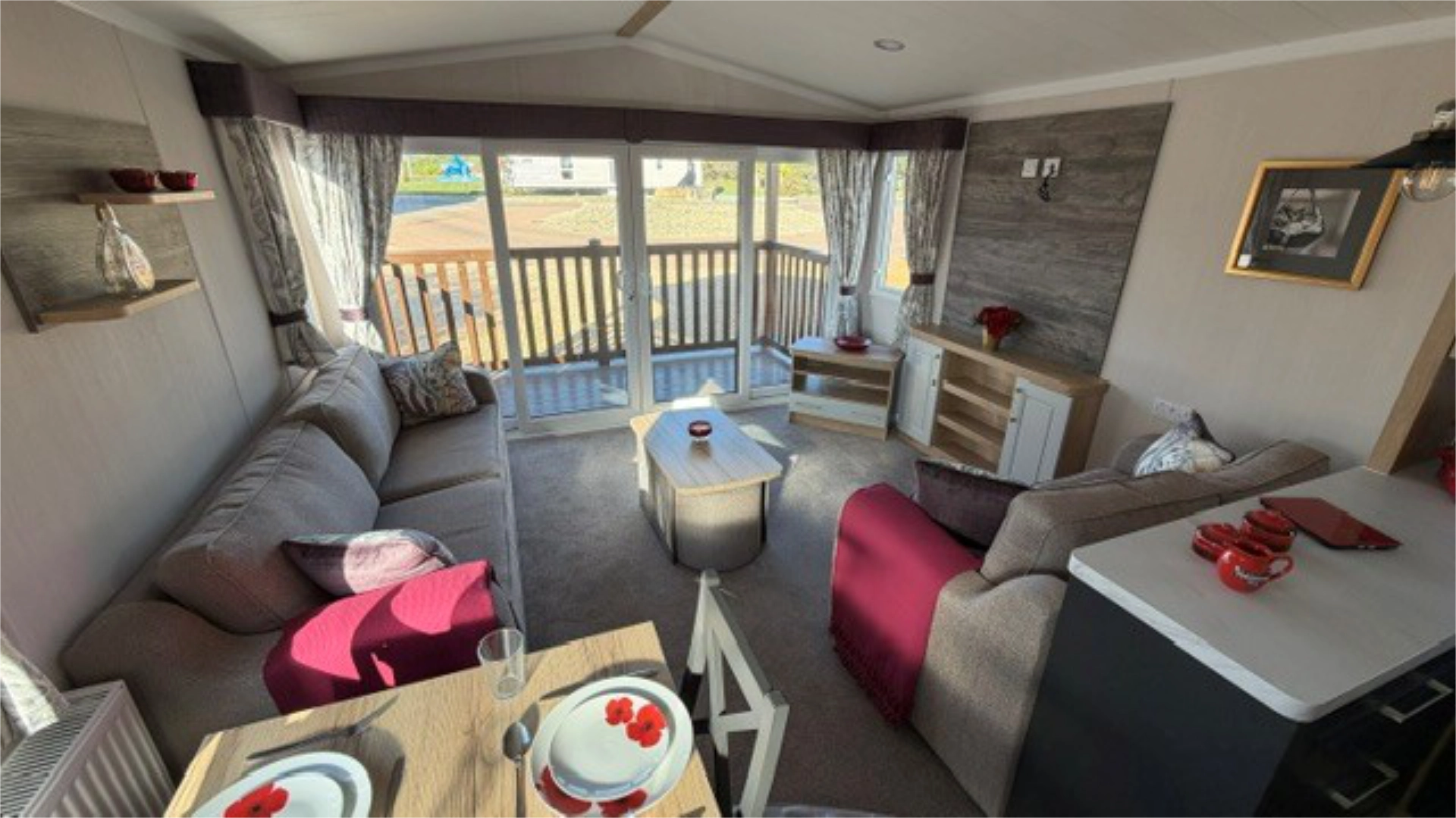 Brand new Willerby Vogue, 43 x 14.5 flagship model on Sandpiper Court. Huge windows, sliding doors, luxury kitchen, walk-in wardrobe, hidden ensuite, decking and pitch..
