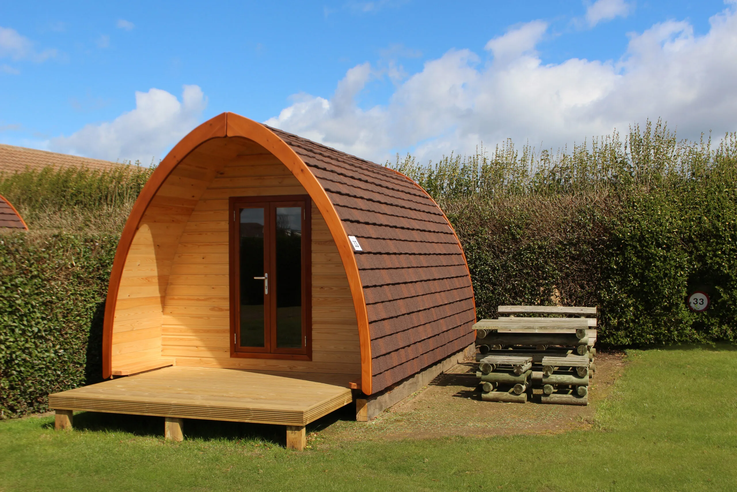 Family camping pods offer a modern camping experience for 3–5 guests, with heating, electricity, TV and access to touring facilities.