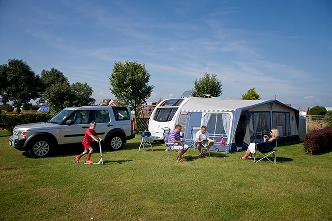 Level, hard-standing paved areas with additional grass area for awnings and some pitches are hedged for that extra privacy.