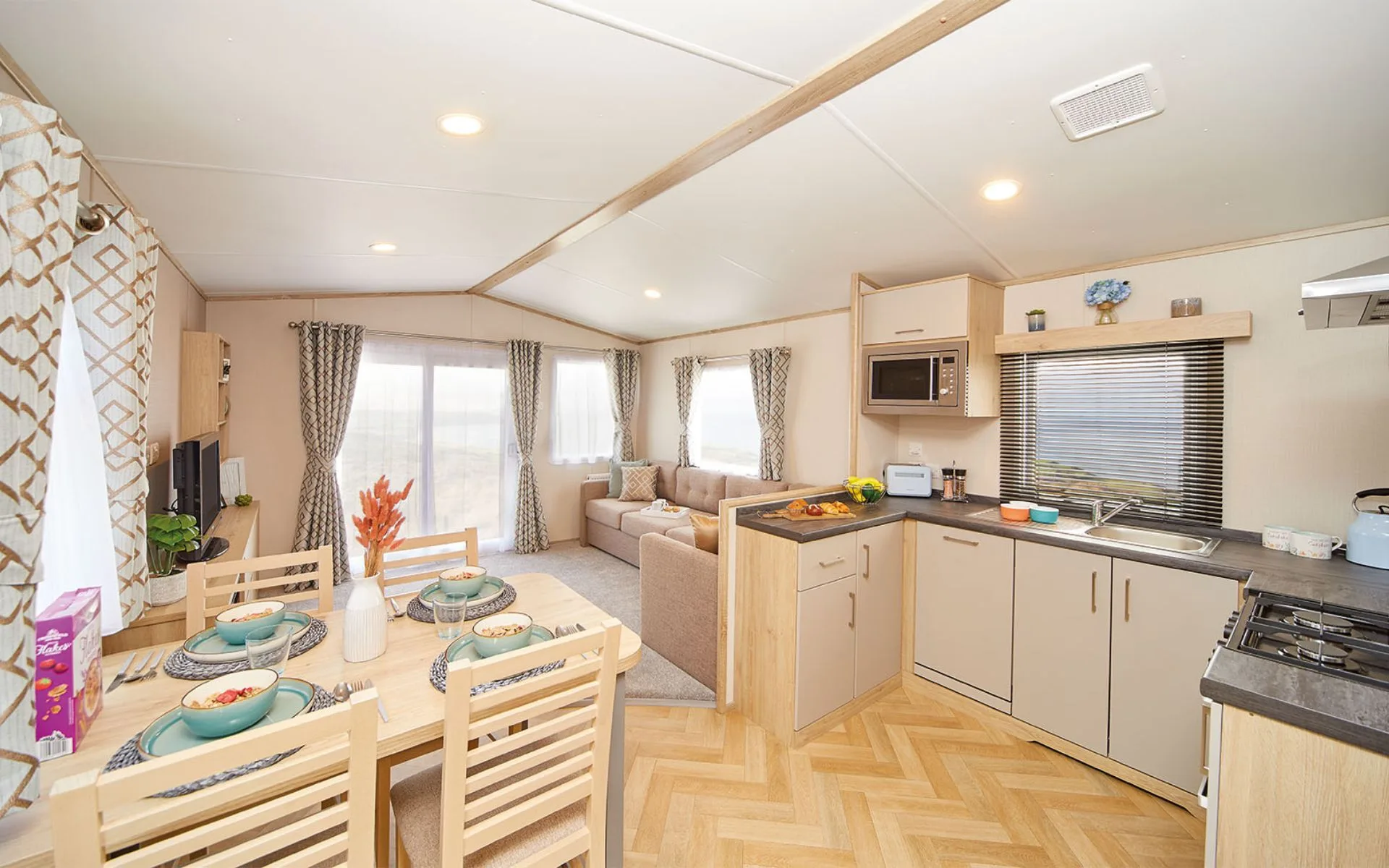 Enjoy modern comfort in the Deluxe Plus Sierra Holiday Homes. With stylish interior these 4–5 berth caravans provide the perfect Norfolk holiday base for families, couples, or groups.