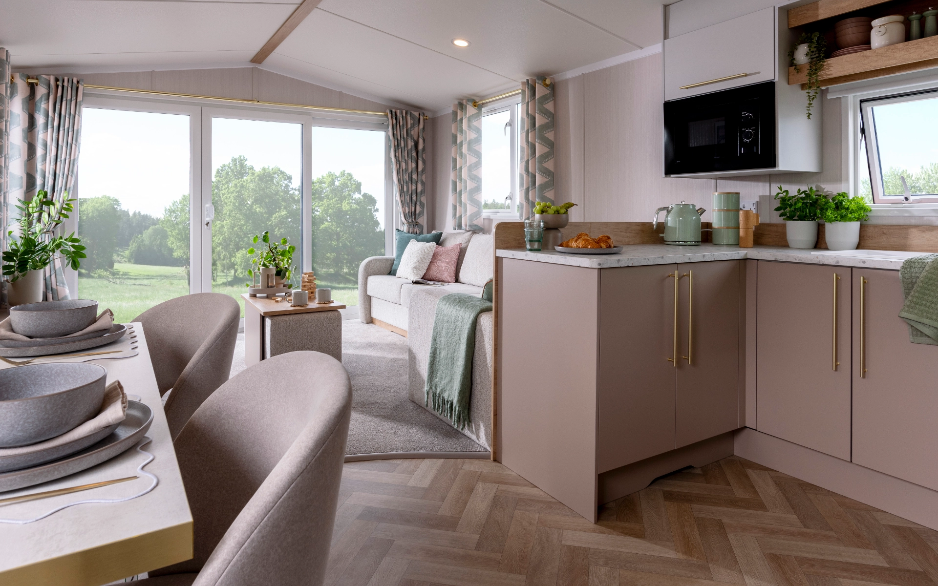 Modern and affordable Classic Plus static caravans featuring open-plan living, decked verandas. Select units are dog-friendly, making them perfect for the whole family.