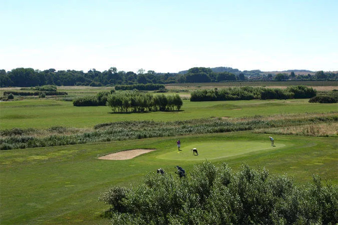 The only par 5 on the course at 505 yards, follows the ancient reed bed in a double dogleg, any ball left is out of bounds all the way to the green. But 3 steady accurate shots will get you on to the green ready to attack for a birdie.