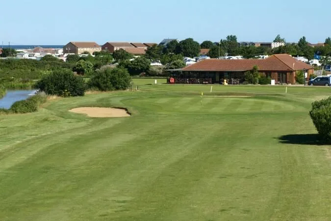 A 347-yard dogleg left par 4 follows the Heacham River to the green, a good drive is needed to ensure a shorter club selection to the tight green surrounded by out of bounds.