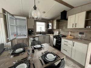 Step into a new era of holiday home living with the 2026 ABI Beverley – the latest model to arrive at Searles. This striking 2-bedroom holiday home sleeps up to 6 and showcases ABI’s sleek new exterior design for 2026, setting a fresh standard in style and sophistication. With front-opening patio doors and a light, airy layout, it’s the perfect choice for modern family getaways.