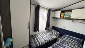 A nice spacious lounge including an electric fire , lovely entertainment unit and free standing furniture. The lounge has a big feature window which lets lots of light in making it feel bright and warm .The master bedroom is also another feature having a large double bed , vanity dressing area with large wardrobe . En suite a large shower, wc and basin. Second bedroom comprises of 2 single beds with storage above , a small vanity dressing area and a wardrobe. New Air conditioning unit. UPVC side decking.