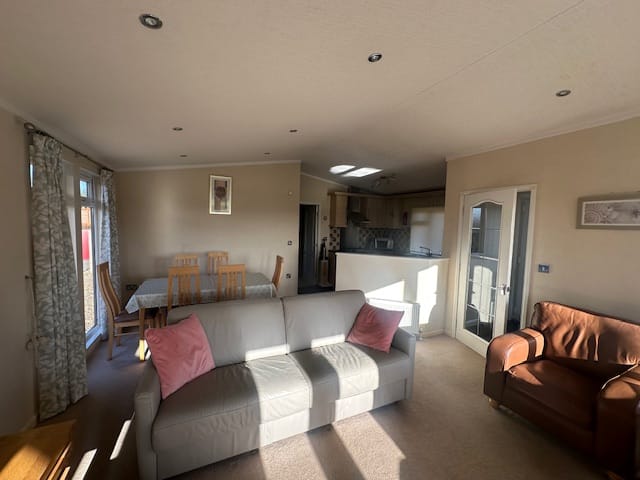 Private sale – 2003 Tingdene Country Lodge, 40x20ft, 2-bed on Fairway Court. Spacious decking, parking for two cars, open-plan living, freestanding furniture, spacious kitchen and large shower room. Rare opportunity to own in one of the most desirable areas of the park — book your viewing today!