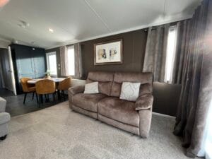 Introducing the 2025 Swift Margaux a stunning, modern holiday home offering style, comfort, and premium features throughout. Measuring 38x12ft with two spacious bedrooms, this brand-new model is positioned on an exceptional pitch at Searles, complete with full wraparound decking and a large front deck perfect for relaxing, entertaining, and soaking up the sunshine. With front-opening patio doors, the indoor and outdoor spaces connect beautifully for effortless holiday living. Inside, the Margaux boasts a bright and airy open-plan living space furnished with high-quality freestanding furniture, creating a warm and inviting atmosphere. The kitchen is stylishly finished and fully equipped with integrated appliances — including a dishwasher — making longer stays or family breaks even easier. Whether you’re enjoying cosy evenings inside or hosting guests for dinner, this layout delivers a perfect blend of practicality and modern elegance. The accommodation is equally impressive. The main bedroom offers fantastic space, complete with a private ensuite shower room and plenty of storage. The twin bedroom is well-sized and ideal for visiting guests or family. A large, contemporary family shower room completes the interior, ensuring comfort and convenience all season long. With its premium pitch, full decking, and high specification, the 2025 Swift Margaux represents a superb opportunity to enjoy holiday home ownership at its best. Book your viewing today and see why this outstanding model is already creating so much interest.